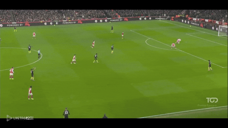 However, this does not mean Arsenal struggled to retain possession, circulate the ball, or progress play, even when they were forced backwards. Every tactical approach comes with its drawbacks, and with a hybrid pressing scheme, the main risk is allowing the opposition access to a free man. Arsenal were able to exploit this at times, particularly when Manchester United were transitioning from their low block to defending higher up the pitch.