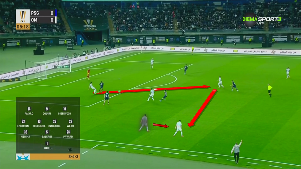 The numerical advantages always allow Marseille to find a central player in space, taking multiple players out of the game and beating the press.